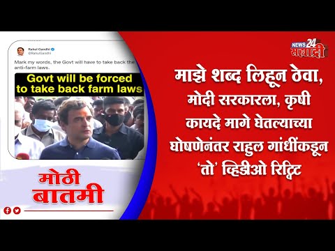 News24सह्याद्री - कृषी कायदे मागे घेतल्याच्या घोषणेनंतर राहुल गांधींकडून ‘तो’ व्हिडीओ रिट्विट...पहा महत्वाची बातमी....